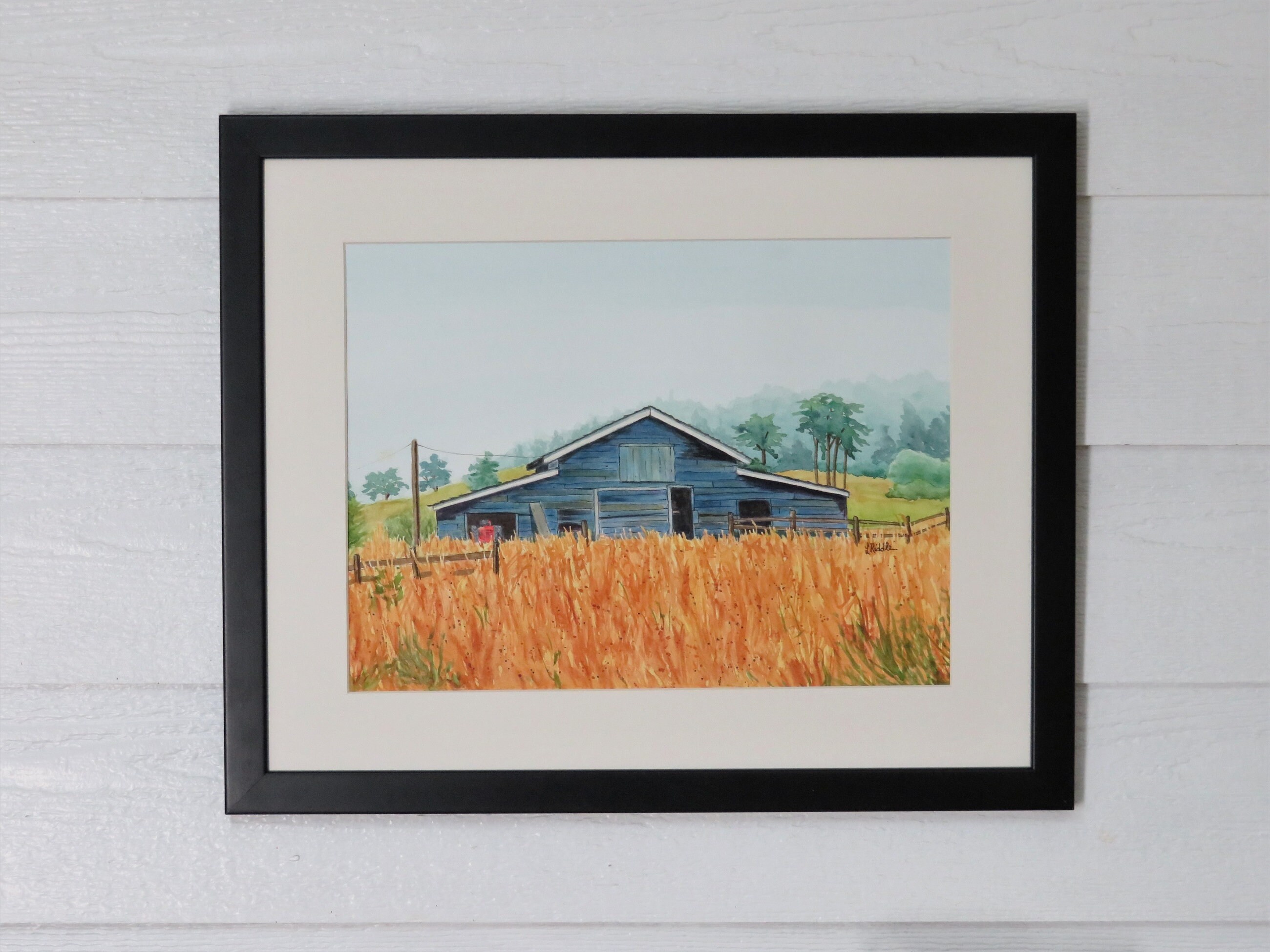 Blue Barn 12x18 Watercolor Original Old Barn Red Tractor Etsy De